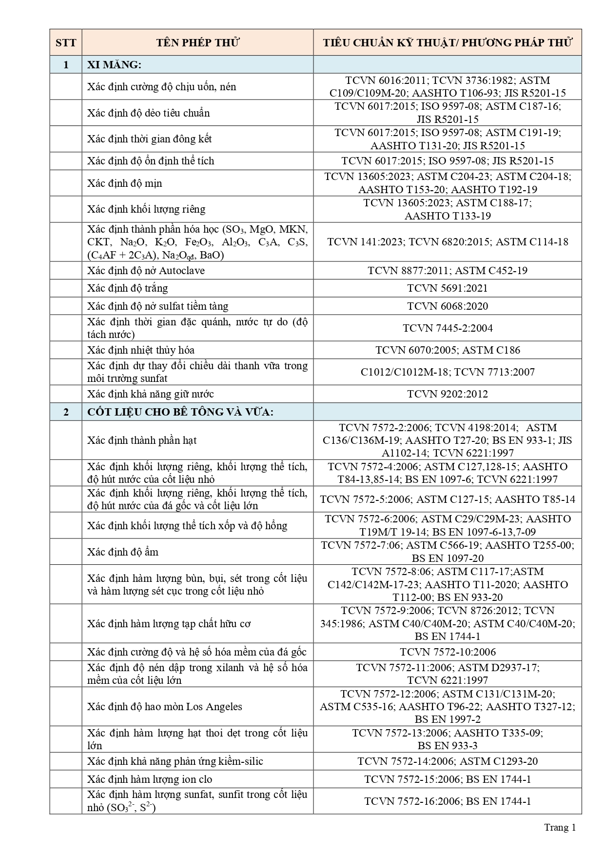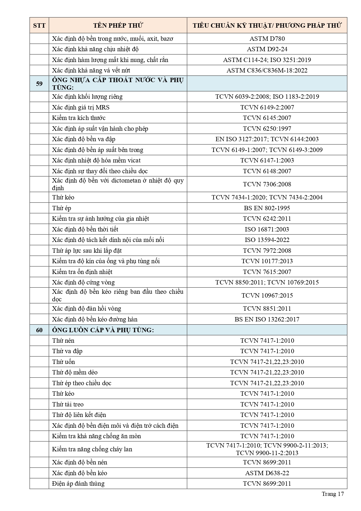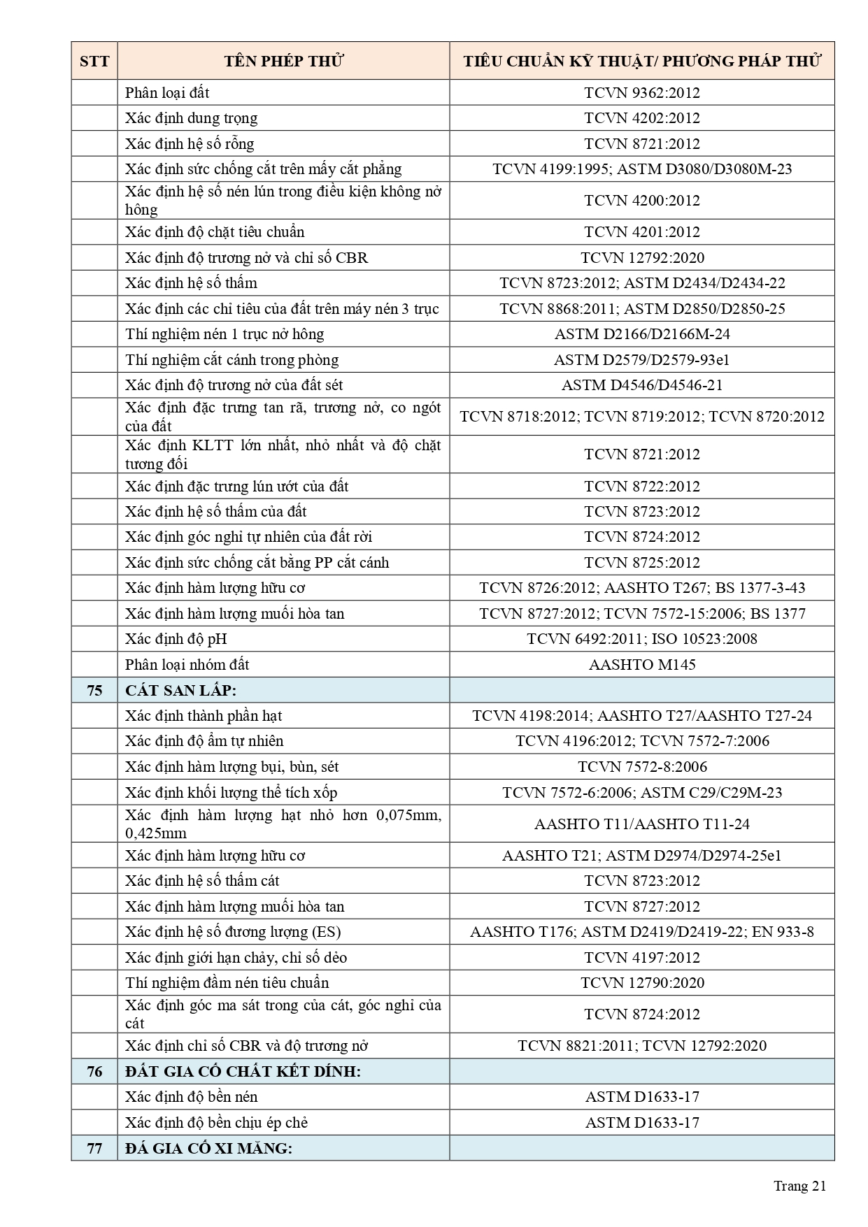 DANH SÁCH TRẠM THÍ NGHIỆM