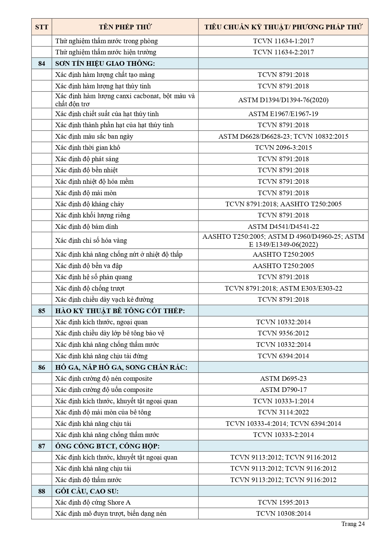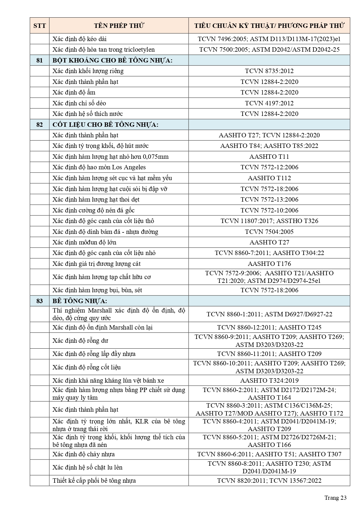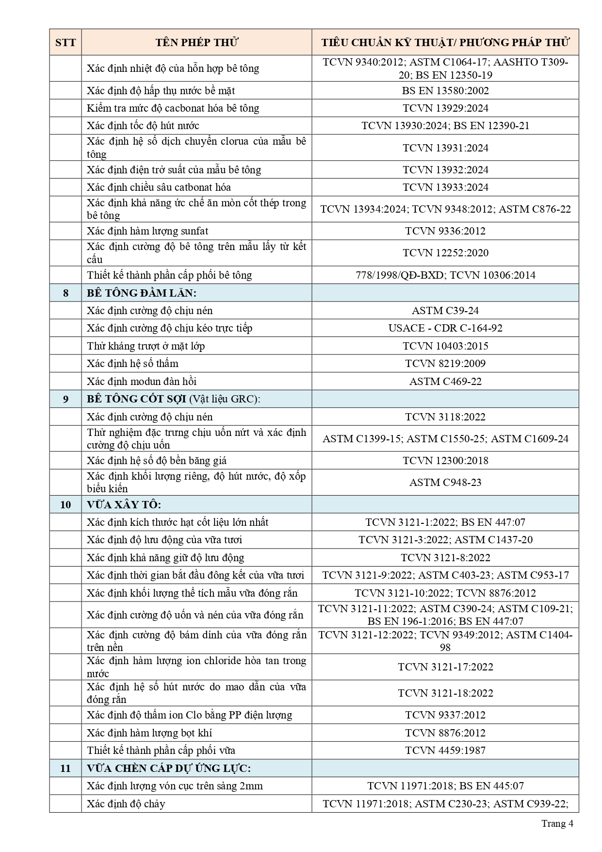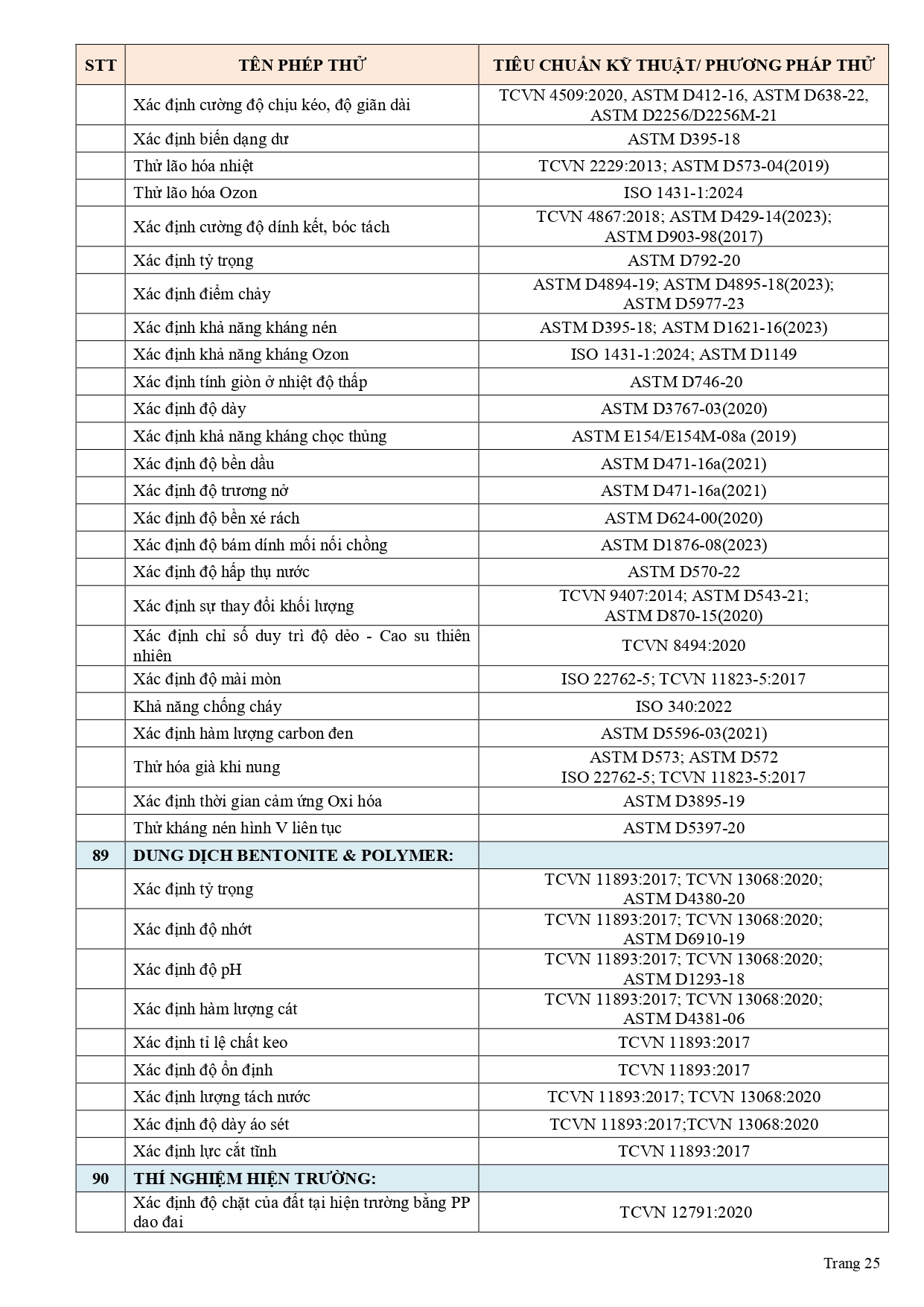 DANH SÁCH TRẠM THÍ NGHIỆM